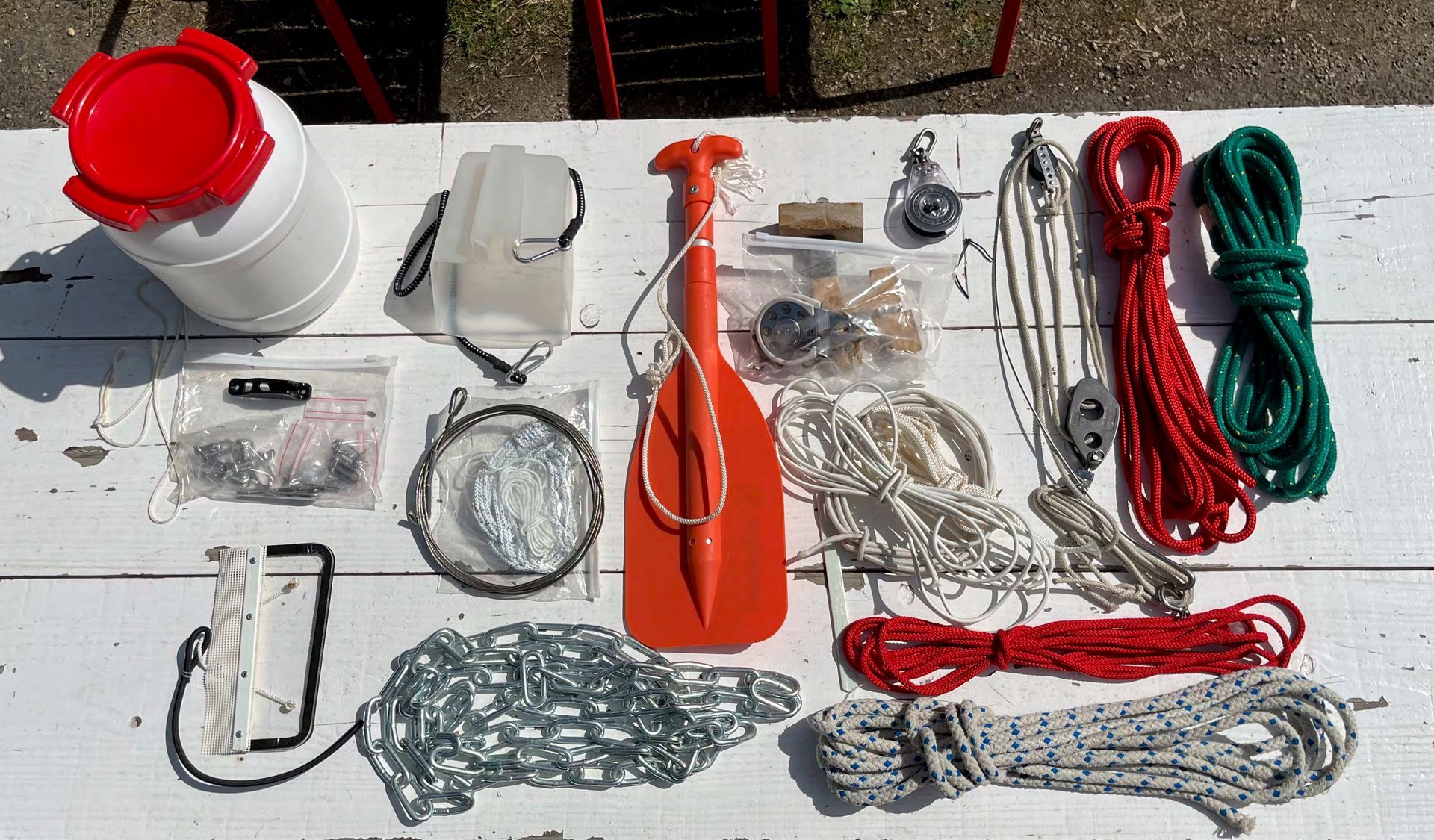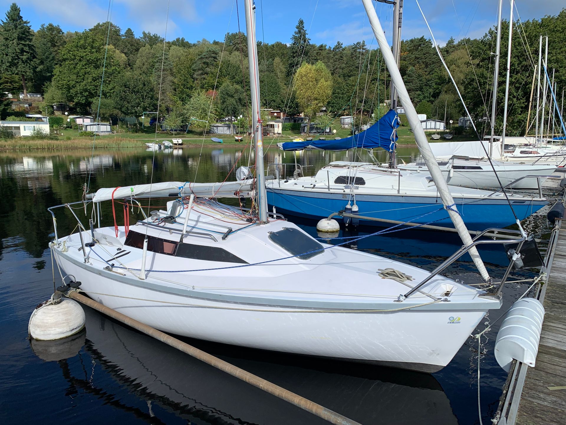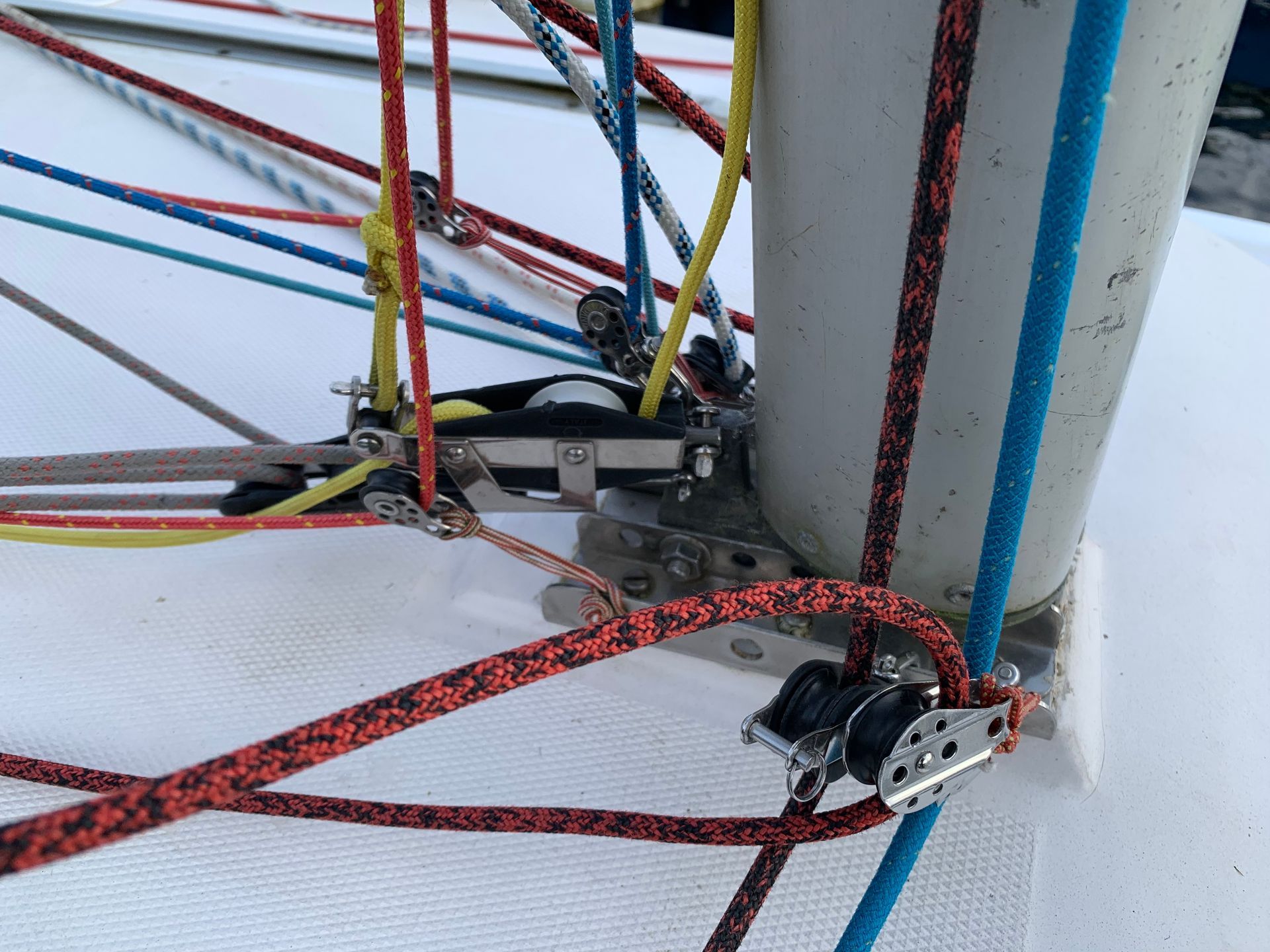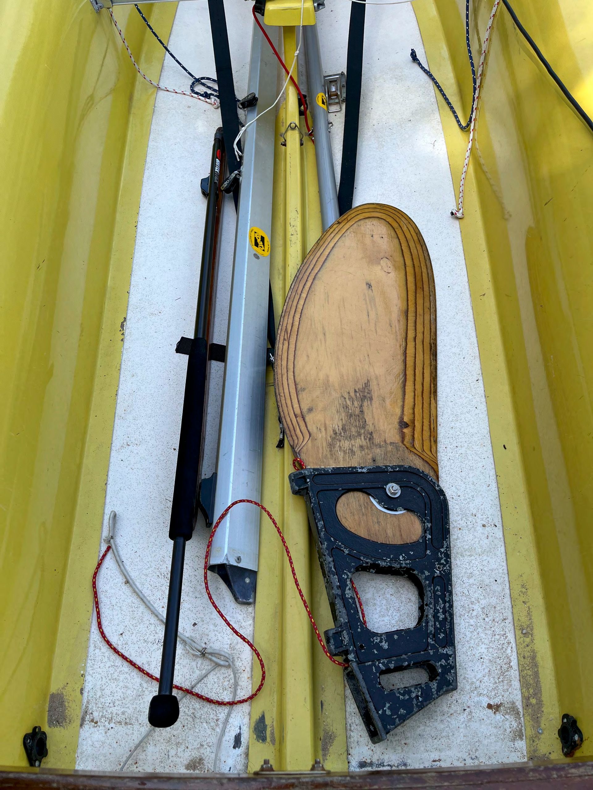 Remorque de route, remorque de plage, bâche de protection, armement complet, 2 gilets, 1 harnais de rappel, stick long pour nav en solo, pièces de rechanges, gv foc et spi en bon état, carte de circulation.